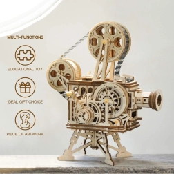 Postavte si vlastní mechanický filmový projektor z přírodního dřeva, který skutečně promítá černobílý film. Model ROKR nabízí ruční klikový pohon, laserem přesně vyřezané dílky a montáž bez lepidla. Skvělá edukační dekorace, která rozvíjí technické myšlení a potěší milovníky retro designu i kinematografie.