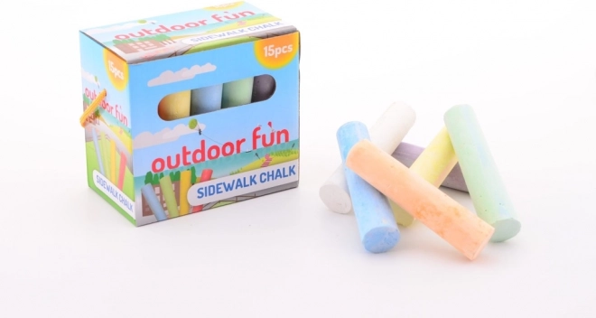 Sada velkých kříd na chodník v praktické krabičce obsahuje 15 ks, ideální pro kreativní malování na chodníky a další povrchy.