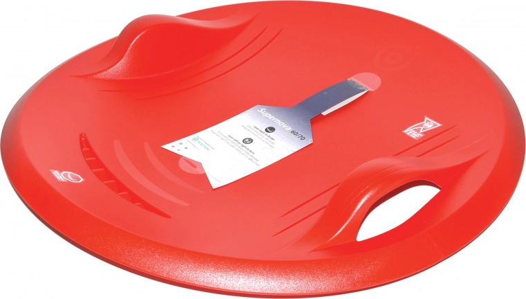Užijte si zimní zábavu se sáňkovacím talířem Supernova o průměru 70 cm v červené barvě. Nabízí nosnost 100 kg, protiskluzovou úpravu povrchu a integrované rukojeti pro bezpečný úchop. Snadné zatáčení nakloněním a brzdění zakloněním zajišťují skvělou ovladatelnost.