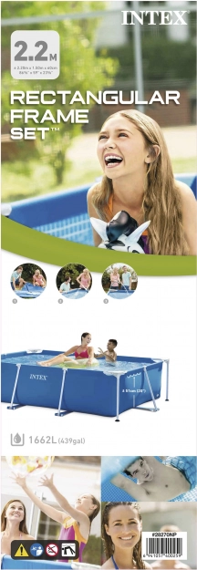 Praktický zahradní bazén Intex o rozměrech 220 × 150 × 60 cm potěší celou rodinu. Nabízí stabilní rámovou konstrukci, třívrstvý PVC materiál s nylonovou výztuží, objem 1662 l a rychlou montáž zhruba za 30 minut. Díky odtokovému ventilu je vypouštění vody snadné a bezpečné.