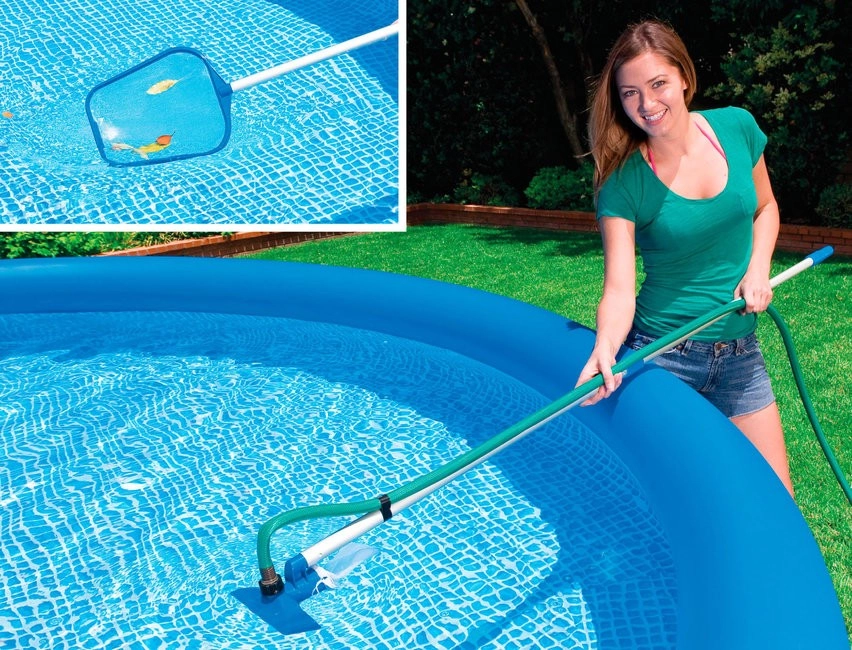 Kompletní čisticí sada INTEX je ideálním řešením pro domácí bazény až do průměru 488 cm. Vodní vysavač napojený na zahradní hadici vytváří tlak a účinně sbírá písek, listí a usazeniny ze dna do přiloženého sáčku, zatímco jemná síťka snadno odstraní plovoucí nečistoty z hladiny.