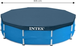 Praktická krycí plachta INTEX pro rámové bazény o průměru 305 cm spolehlivě chrání vodu před nečistotami a pomáhá udržet teplotu. Je vyrobena z odolného vinylu (110 g/m²), nabízí přesné dopasování, jednoduchou instalaci s utažením pomocí šňůry a díky 25cm přesahu drží pevně na místě.