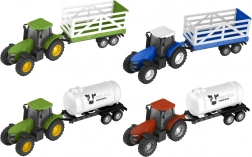 Vyberte si traktor v zelené, modré nebo červené a připojte přívěs podle chuti – univerzální valník nebo stylovou cisternu na mléko (dle dostupnosti).