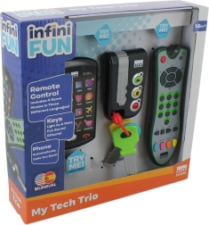 Trio set TECH TOO kombinuje tři oblíbené interaktivní hračky: klíče Klic Klac, TV ovladač Zip Zap a dětský smartphone. Děti si s nimi užijí realistickou hru na dospělé, naučí se rozpoznávat zvuky a rozvíjejí jemnou motoriku i představivost. Každá hračka je vybavena světelnými a zvukovými efekty pro maximální zaujetí.
