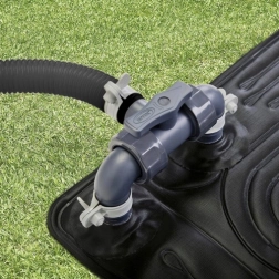 Díky možnosti propojit více podložek přizpůsobíte ohřev objemu vašeho bazénu. Integrovaný bypass ventil umožní regulovat průtok nebo podložku dočasně vyřadit z okruhu. Podložka podporuje hadice Ø 32 mm a pomocí dodaných adaptérů i Ø 38 mm. Pro nejlepší výkon použijte filtrační čerpadlo s průtokem 2006–5678 l/h.