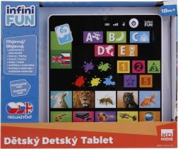 Zábavný a edukativní dětský tablet pomáhá předškolákům objevovat svět bez nutnosti umět číst či psát. Nabízí jednoduché interaktivní hry, učí písmena a slova, barvy, čísla a tvary, a také zvířátka a hudební nástroje. Je lehký, snadno přenosný a má automatické vypnutí pro úsporu baterie.