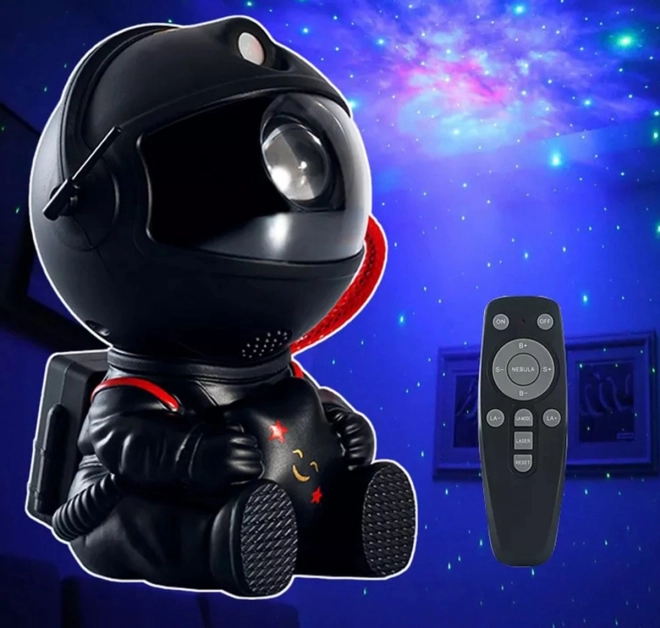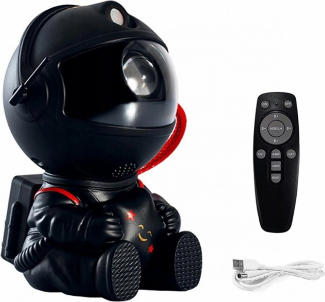 Otočná hlava astronauta umožňuje projekci v široké rovině a s velkým dosahem. Jas LED diod lze nastavit, stejně jako rychlost otáčení a dobu provozu. Pohodlné IR dálkové ovládání usnadňuje nastavení projektoru na dálku.