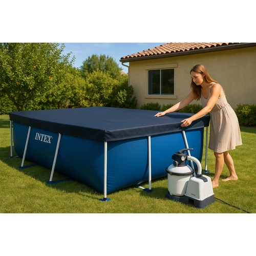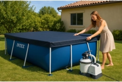 Kryt INTEX je navržen pro obdélníkové rámové bazény 300 × 200 cm. Díky pevnému materiálu odolá povětrnostním vlivům a pomáhá chránit vodu před listím, hmyzem a nečistotami. Přesah cca 20 cm a fixační šňůra zajišťují stabilní uchycení, aby se kryt nesesouval.
