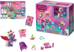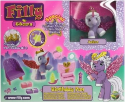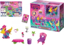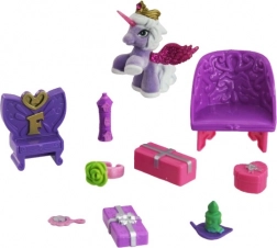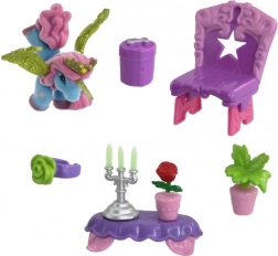- figurka Filly/plyšový jednorožec nebo koník, mini nábytek a dekorace (stolek, židličky, zrcátko, doplňky)