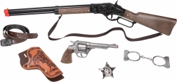 Proměňte dětskou hru na divoký západ v realistické dobrodružství. Tato velká kovbojská sada spojuje klasický vzhled, bezpečné provedení hraček a kvalitní materiály. Kovová puška a revolver na kapslíky (8ranové pásky) přinášejí zvukový efekt, který děti milují, zatímco pouta a šerifská hvězda dotváří celý outfit.