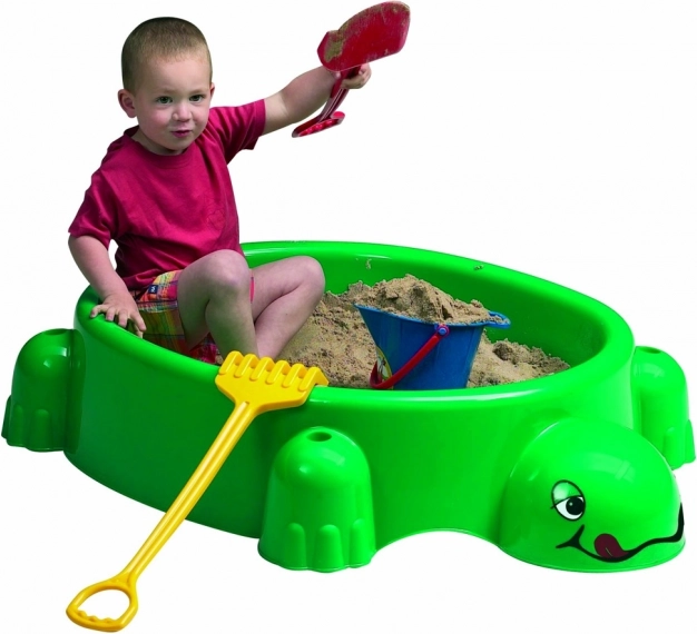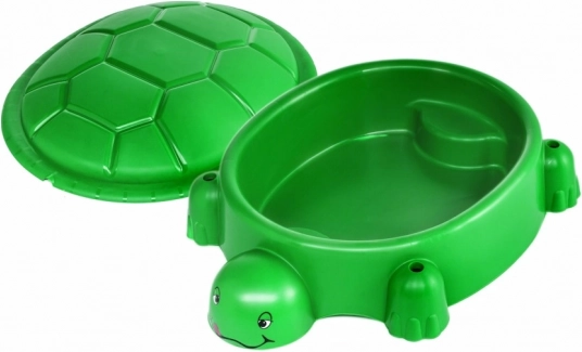 Díky pevnému víku ve tvaru želvího krunýře zůstává písek bez nečistot a připravený k hraní kdykoli.