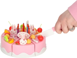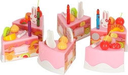 Objevte kouzlo narozeninové oslavy každý den. Dětský růžový dort z 6 dílků s nápisem „Happy Birthday“ lze snadno rozebrat a znovu sestavit díky suchým zipům. Malí kuchaři si jej ozdobí podle nálady – svíčkami, králičky a barevným ovocem – a naservírují na talířky.