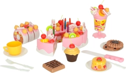 Kromě dortu nechybí sušenky, roládky, cupcake, pohár na zmrzlinu a náčiní – vše pro realistickou hru na oslavu.