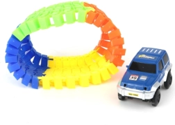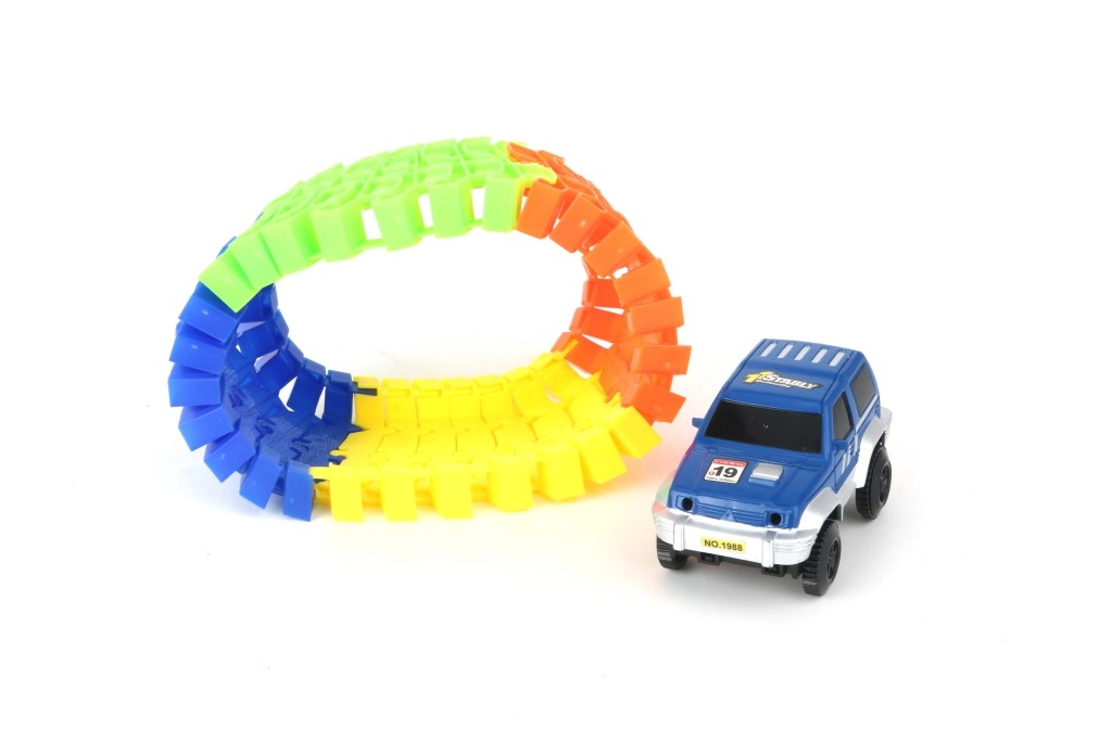 Tato variabilní závodní dráha je ideální volbou pro malé závodníky. Díky jednoduchému systému spojování si děti snadno postaví vlastní trať a užijí si rychlé jízdy s přiloženým autíčkem. Dráhu lze libovolně tvarovat, což podporuje kreativitu a fantazii.