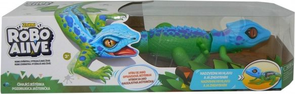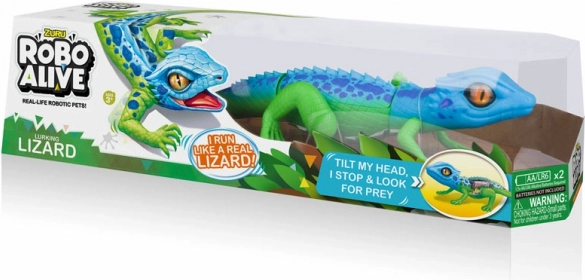 Ještěrka ZURU Robo Alive přináší dětem realistický zážitek z hraní. Díky detailnímu zpracování, texturované kůži a výrazným očím působí jako živá. Pohybuje se svižně vpřed, zastaví se a "vyhlíží kořist" – přesně jako opravdový plaz.