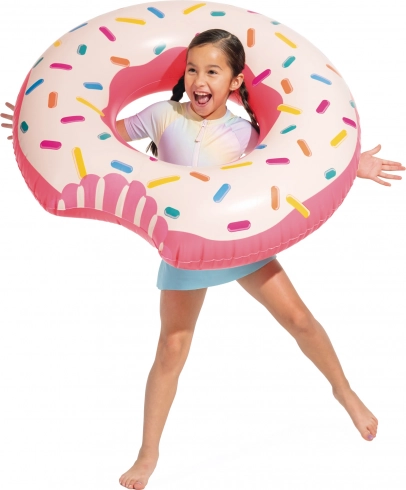 Nafukovací kruh ve tvaru Donutu je zábavný a odolný doplněk pro vaše vodní radovánky. Perfektní pro děti i dospělé, co milují hru a relaxaci na vodě.