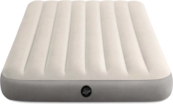 Nafukovací dvoulůžková matrace INtex se sametově hebkým, voděodolným povrchem poskytuje stabilní a pohodlné spaní doma, na chatě i na cestách. Vnitřní konstrukce s Dura‑Beam Fiber výztužemi rovnoměrně rozkládá tlak a podporuje správnou polohu páteře pro klidný a zdravý spánek.