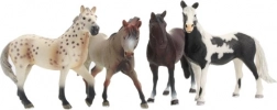 Čtyři plastové figurky koní, z nichž každá v jiném zbarvení, což umožňuje dětem vytvářet různé scény a příběhy.