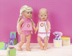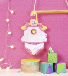 Praktické provedení s pružnými lemy zajišťuje pohodlné nošení a dlouhou výdrž při každodenním hraní. Set obsahuje sladěné tílko a kalhotky, které lze kombinovat s dalšími kousky oblečení pro panenky.