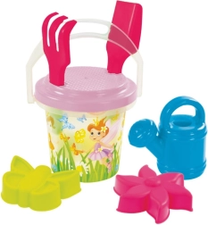 • Kompletní výbava: kyblík 1,3 l, hrabičky, lopatka, sítko, konvička a 2 tematické bábovky