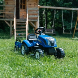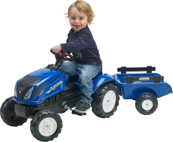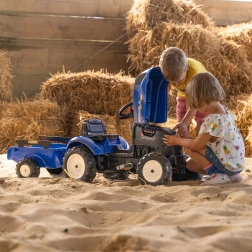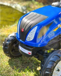 Šlapací traktor inspirovaný skutečnými stroji NEW HOLLAND přináší dětem realistický zážitek z řízení. Díky otevírací kapotě s imitací motoru mohou malí řidiči prozkoumat „vnitřnosti“ stroje, zatímco řetězový pohon na zadní nápravu zajišťuje plynulou jízdu. Odnímatelný přívěs je ideální na převážení hraček či drobných nákladů na zahradě.