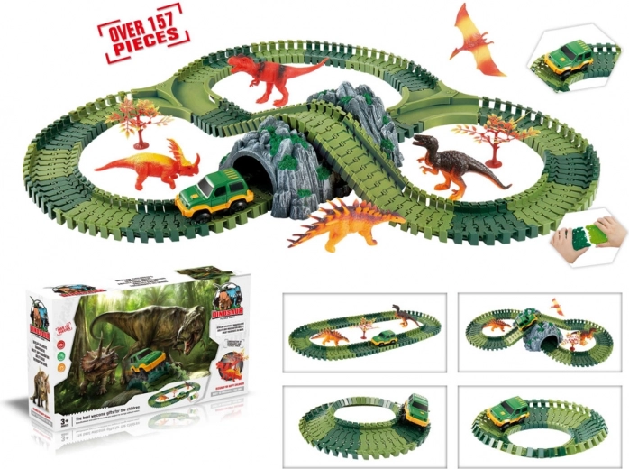 Tato variabilní dráha s dinosaury přináší dětem akční svět pravěku přímo do pokoje. Díky flexibilním dílkům lze koleje snadno přestavovat a vytvářet nové tratě s tunelem, zatáčkami i mosty. Součástí je svítící autíčko, které projíždí sestavenou trasou a oživuje každou jízdu.
