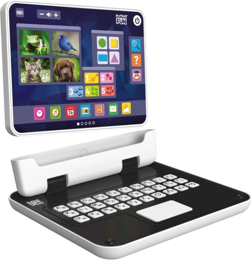 Dopřejte svým dětem skvělou zábavu s herními režimami, které zahrnují čísla, objekty, barvy, tvary a zvířata. Nabídku funkcí zábavy doplňují kalendář, fotoaparát, počasí, čas, hudba, e-mail a kniha. Pro více výzev mohou děti aktivovat režim písmenek připojením klávesnice.