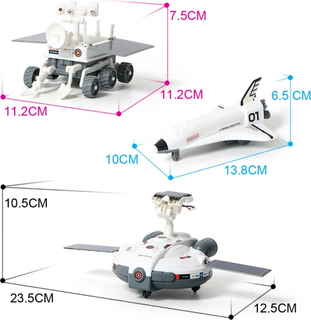 - 3 modely v 1 – raketoplán, lunární vozidlo, kosmická stanice.
