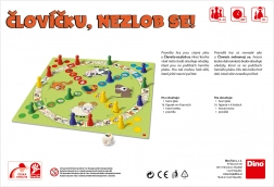 Dino Človíčku, nezlob se! je klasická desková hra navržená speciálně pro nejmenší děti. Pomocí obrázkové kostky se učí zábavným způsobem základy taktiky a počítání, zatímco se bez obav baví.