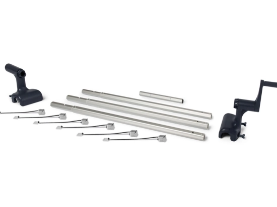 Ergonomická klika umožňuje plynulé navíjení a odvíjení plachty s minimální námahou.
