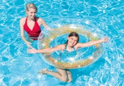 Nafukovací kruh INTEX Sparkling Glitter je ideální volbou pro bazén, jezero i moře. Díky transparentnímu materiálu a třpytkám uvnitř vytváří na vodní hladině efekt jiskření, který dodá vašemu odpočinku jedinečný styl. Robustní konstrukce z masivního vinylu zajistí dlouhou životnost a pohodlné použití.