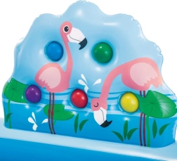 - bazén, skluzavka, fontána, flaming, opička, hrošík, kroužek (ringo), 5 míčků, opravná záplata, návod, barevné balení
