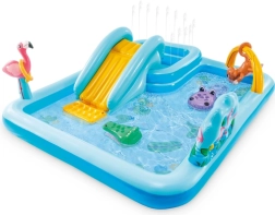 Udělejte z vaší zahrady letní ráj! Dětské vodní hrací centrum INTEX nabízí měkkou skluzavku s tlumicí podložkou, plytký brod pro nejmenší a zábavnou fontánu. Odolné PVC, snadná údržba a bezpečná hloubka od 11 cm zaručí hodiny bezstarostné zábavy pro děti od 2 let.
