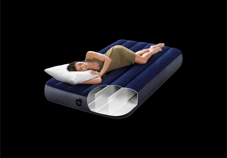 Užijte si klidný spánek kdekoli díky matraci INTEX s výškou 25 cm pro pohodlné ležení a snadné vstávání. Konstrukce s Dura‑Beam Fiber využívá tisíce pevných vláken, která zvyšují stabilitu a odolnost proti prohýbání. Příjemný velurový povrch je hebký na dotek a je voděodolný, takže se snadno udržuje.