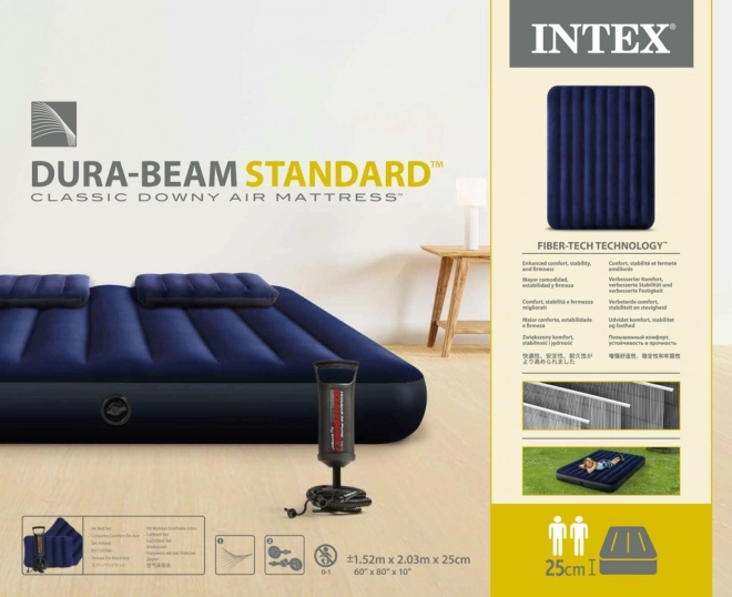 Praktická nafukovací matrace INTEX pro dvě osoby nabízí rozměry 203 × 152 × 25 cm, měkký velurový povrch a stabilní konstrukci pro pohodlný spánek doma i na cestách. V balení najdete ruční pístovou pumpu, 2 nafukovací polštáře a opravnou záplatu. Díky ventilu Boston je nafukování i vyfukování rychlé a snadné.