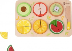 Sada dřevěných ovoce na krájení je ideální pro malé děti, které milují si hrát na kuchaře. Tento vzdělávací set obsahuje 23 různých prvků včetně desky, nožíku a rozděleného ovoce, což poskytuje nekonečné možnosti pro kreativitní hry a imaginární scénáře.
