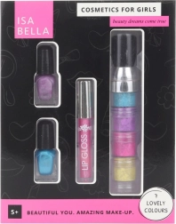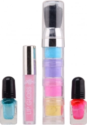 Stylová dětská sada líčení pro malé parádnice obsahuje oční stíny, lesk na rty a 2 laky na nehty. Díky kompaktním rozměrům 16 × 12,5 × 4 cm se snadno vejde do batůžku a je skvělá pro zábavné líčení od 5+ let.