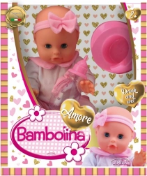 Panenka Bambolina vypadá jako skutečné miminko, které pije a čůrá. Součástí je růžový nočník a láhev na krmení, které inspirují dětskou představivost a stávají se společníky při hře.