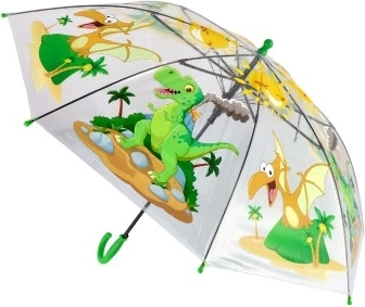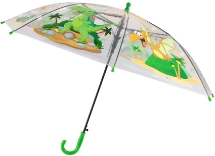 Tento průhledný dětský deštník s hravými dinosaury je ideální do školy, školky i na výlety. Průhledná stříška zajišťuje lepší výhled při chůzi, zatímco pevné plastové a kovové prvky poskytují spolehlivou ochranu před deštěm.