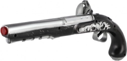 Dekorativní hračkářská pistole s rytinami a viditelnou červenou špičkou pro bezpečné hraní dodá každé pirátské misi šmrnc.