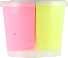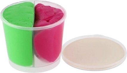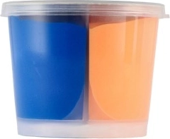 Praktické rozdělení kelímku umožňuje mít hned dvě výrazné barvy připravené k tvarování a míchání – bez nepořádku a s přehledem.