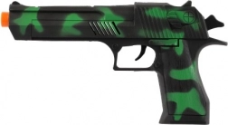 Zábavná a bezpečná hračka pro malé dobrodruhy – plastová pistole se setrvačníkem o délce 23 cm. Při stisknutí spouště vydává realistické zvukové efekty bez nutnosti nábojů, takže je bezpečná pro děti a ideální pro hraní na policisty a zloděje od 3 let.