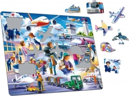 Objevte zábavné dětské puzzle s motivem rušného letiště. Díky pevnému okraji a nepravidelným dílkům je skládání intuitivní a zábavné. Originální tvary dílků, pevná deska pro snadné skladování a otvory pro jednoduché vyjímání potěší malé stavitele i rodiče.