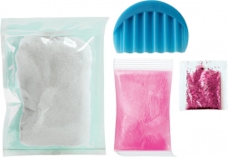 - Písek, kouzelný gel, sáček s doplňky, vykrajovátko