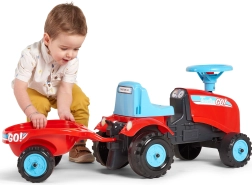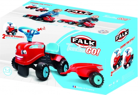 Dopřejte dětem první řidičské zážitky s jezdícím traktorem FALK GO. Robustní plastová konstrukce, nízké sedátko a široký rozchod kol zajišťují výbornou stabilitu a bezpečí. Díky odnímatelnému přívěsu si mohou malí farmáři vozit hračky nebo drobné poklady, zatímco klakson na volantu přidává zábavě realistický prvek.