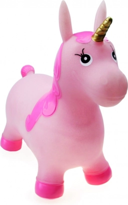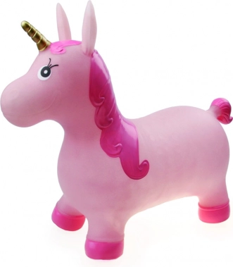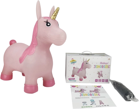 Veselé nafukovací zvířátko- jendnorožec na skákání a sezení. Dítě chytne zvíře za ouška a může skákat. Součástí balení je nafukovací pumpička. Vhodné pro děti od 2 let.