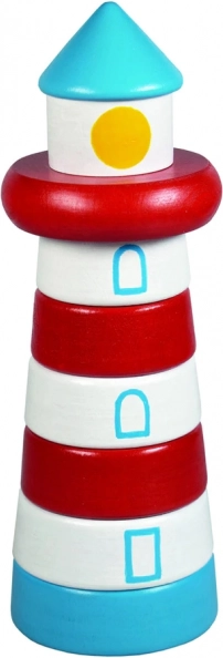 Dřevěný maják jako skládací pyramida vybízí děti k nasazování jednotlivých dílků na kolík podle tvaru a velikosti. Hra intuitivně podporuje koordinaci oko–ruka, trpělivost i vnímání barev a tvarů a zároveň příjemně stimuluje hmat díky hladkému povrchu.
