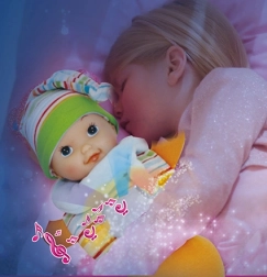 Interaktivní funkce zaujmou děti – panenka hraje jemnou hudbu a rozsvěcí světýlka pro ještě větší radost ze hry.