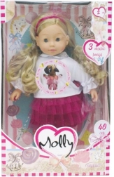 Roztomilá panenka Molly od Bambolina potěší každé dítě od 3 let. Má realistickou vinylovou hlavičku, ruce a nohy, mrkací oči a dlouhé česatelné vlásky. Umí přehrát 3 veselé písničky, které zpříjemní hru a podporují kreativitu. Pro provoz jsou potřeba 3× LR44 baterie (nejsou součástí balení).
