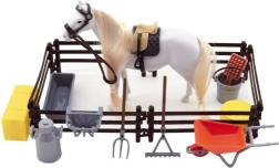 Tato poutavá sada přináší dětem autentický zážitek z péče o koně. Bílý kůň s dlouhou hřívou a ocasem, které lze česat, podporuje jemnou motoriku, představivost a vztah ke zvířatům. Realistické sedlo a ohlávka přidávají na věrohodnosti a umožňují dětem vytvářet vlastní příběhy z farmy.